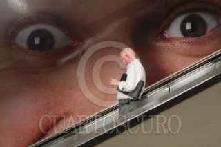 MÉXICO D.F., 03AGOSTO2010.- Los ojos de una publicidad observan a los usuarios del Metro, esto en la estación Auditorio. FOTO: MOISÉS PABLO/CUARTOSCURO.COM