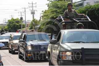 CULIACAN, SINALOA, 03AGOSTO2010.- Fuertemente custodiado por elementos del Ejercito Nacional se llevo a cabo el sepelio de Ignacio “Nacho Coronel” en un cortejo fúnebre que se llevo desde la Funeraria Moreh, ubicada en Boulevard Zapata, hasta el Panteón Jardines del Humaya, donde finalmente fueron sepultados los restos de “Nacho Coronel” y su sobrino “El Gallo” que murió en un enfrentamiento posterior a la muerte de Ignacio Coronel en la ciudad de Guadalajara. En la entrada del Panteón fueron recibidos al son de una banda Sinaloense y acompañado hasta la capilla, donde finalmente fueron sepultados. FOTO: LEO ESPINOZA/EL DEBATE DE CULIACAN/CUARTOSCURO.COM