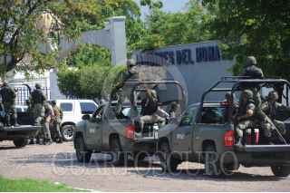 CULIACAN, SINALOA, 03AGOSTO2010.- Acompañado de un grupo de banda de música sinaloense y custodiado por elementos del ejército mexicano se realizó el sepelio de Ignacio “Nacho” Coronel. El cortejo fúnebre salió de la Funeraria Moreh, ubicada por el Boulevard Zapata, hasta el Panteón Jardines del Humaya. También fue sepultado Mario Carrasco Coronel, “El Gallo”, quien murió en un enfrentamiento con autoridades militares en Guadalajara Jalisco. FOTO: LEO ESPINOZA/EL DEBATE DE CULIACAN/CUARTOSCURO.COM