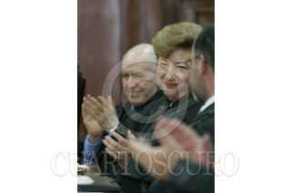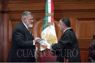 México, D.F., 02MARZO2004.- José Luis Sobéranes, presidente de la CNDH, y Mariano Azuela Huitrón, presidente de la Suprema Corte de Justicia, durante el informe que presentó el ombusman ante SCJN. FOTO: Moisés Pablo/CUARTOSCURO.COM