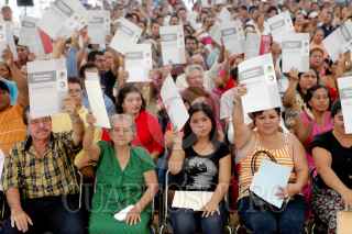 VILLAHERMOSA, TABASCO, 04AGOSTO2010.-Andrés Granier Melo; gobernador del estado y el director de la Comisión para la Regularización de la Tenencia de la Tierra (Corett), Juan Manuel Carreras López, acompañado de Jesús Alí; presidente municipal de Centro realizaron la entrega de 150 escrituras a decenas de familias que durante años habían vivido en la incertidumbre. Lo cual forma parte del Programa de Apoyo a los Avecindados en Condiciones de Pobreza Patrimonial para Regularizar Asentamientos Humanos Irregulares (PASPRAH). FOTO: MARCO POLO GUZMÁN HERNÁNDEZ/CUARTOSCURO.COM