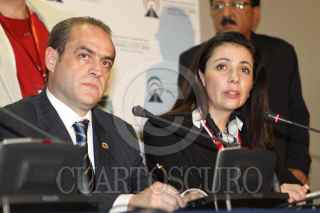MÉXICO, D.F., 06AGOSTO2010.- Lizette Clavel, secretaria general de la Asociación Sindical de Sobrecargos de Aviación (ASSA) durante una conferencia de prensa para informar sobre los últimos acontecimientos en la situación de Mexicana de Aviación; dicha conferencia se realizo dentro de las actividades del 42 Congreso de la Federación Internacional de los Trabajadores del Transporte. FOTO: RODOLFO ANGULO/CUARTOSCURO.COM