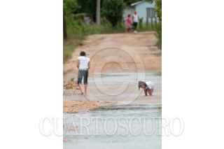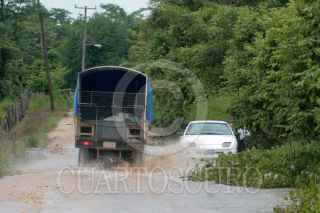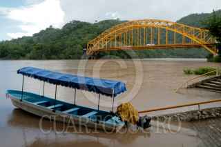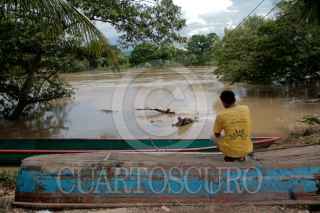 TENOSIQUE, TABASCO, 06AGOSTO2010.- La Comisión Nacional del Agua (CONAGUA) delegación Tabasco, advirtió esta tarde que el río Usumacinta rebaso de manera alarmante su nivel criticó hasta en un metro. Lo anterior empieza afectar con desbordes del afluente y inundada los ejidos Boca del Cerro, Pomona primera sección, la Isla y el Recreo; así mismo un tramo de carretera interestatal ya tiene vados cruzando de extremo al otro de la cinta asfáltica. FOTO: MARCO POLO GUZMÁN HERNÁNDEZ/CUARTOSCURO.COM