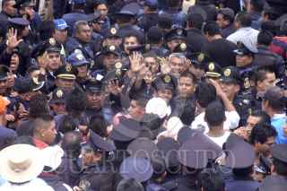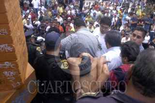 MÉXICO, D.F., 07AGOSTO2010.- Por segundo día consecutivo, dos sujetos estuvieron a punto de ser linchados a causa de un robo en el pueblo de San Antonio Tecomitl, perímetro de la Delegación Milpa Alta. Al lugar, arribaron elementos de granaderos para resguardar a estos sujetos y evitar que la gente enardecida les quitara la vida; finalmente fueron rescatados y puestos a disposición ante el Ministerio Publico en la 50a Agencia ubicada en Doctor Vertiz. FOTO: LUIS CARBAYO/CUARTOSCURO.COM