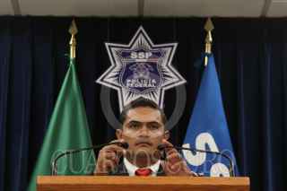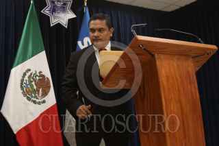 MÉXICO, D.F., 08AGOSTO2010.- Marco Tulio Gómez, de la Unidad de Asuntos Internos de la Secretaría de Seguridad Pública Federal, habló sobre la determinación de la dependencia de separar de sus cargos a cuatro comandantes que fueron denunciados por actos indebidos en el desempeño de sus funciones en Ciudad Juárez, Chihuahua, el día de ayer por 248 elementos de la policía federal. FOTO: IVAN STEPHENS/CUARTOSCURO.COM