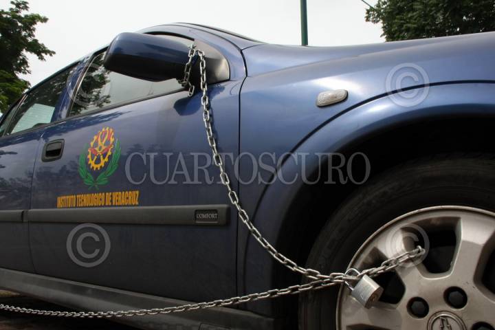 VERACRUZ, VERACRUZ. 09AGOSTO2010.- Maestros afiliados al Sindicato de Trabajadores del Instituto Tecnológico de Veracruz, se manifestaron sellando las oficinas administrativas de la institución pidiendo la destitución del director, Rodolfo López Vázquez, por presuntos malos manejos, así mismo fue inmovilizado el vehículo oficial asignado a López Vázquez del ITV. De seguir este movimiento se estaría afectando a cinco mil trescientos alumnos en el próximo ciclo escolar. FOTO: JOSÉ CANDELARIO/CUARTOSCURO.COM
