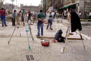 México D.F., 04MAR2004.- Topógrafos realizan trabajos de remodelación en las calles de Brasil y Tacuba en el centro histórico de la ciudad. FOTO: Edgar Rodríguez/CUARTOSCURO.COM