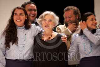 QUERÉTARO, QUERÉTARO, 10AGOSTO2010.- La obra de teatro "Querido Diego te abraza Quiela", basada en un texto de la escritora y periodista Elena Poniatowska. Misma que asistió al estreno e hizo reflexiones sobre la puesta en escena de la cual se mostró sorprendida. La obra dirigida por Mauricio Jiménez está actuada por Ana Bertha Cruces, Beatríz Juan Gil y Leonardo Cruz. La escenografía, vestuario e iluminación es de Fernando Flores. FOTO: DEMIAN CHÁVEZ/CUARTOSCURO.COM