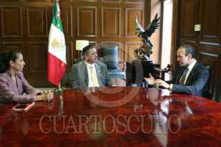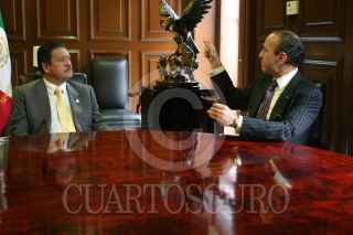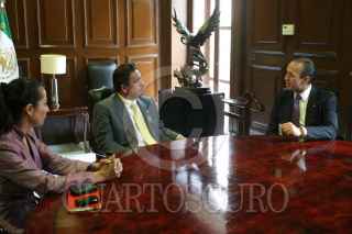MÉXICO, D.F., 11AGOSTO2010.- Lizette Clavel, líder de la Asociación Sindical de Sobrecargos de Aviación (ASSA), Carlos Navarrete, presidente de la mesa directiva del Senado de la República y Fernado Perfecto, secretario general de la Asociación Sindical de Pilotos Aviadores, en reunión privada en la cual conversaron sobre el tema de la Compñía Mexicana de Aviación, esto en la oficina del perredista en la Casona de Xoicotencatl. FOTO: MOISÉS PABLO/CUARTOSCURO.COM