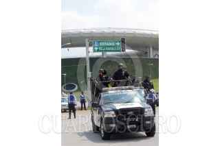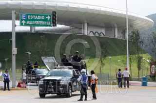 ZAPOPAN, JALISCO, 11AGOSTO2010.- Elementos de la policia federal custodian los alrededores del estadio Omnilife en donde esta noche jugarán las Chivas del Guadalajara contra el Inter de Porto Alegre en la final de ida de la copa Santander Libertadores 2010. FOTO: RODOLFO ANGULO/CUARTOSCURO.COM