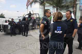 MÉXICO, D.F., 11AGOSTO2010.- La empresa Toyota ubicada en Acoxpa y Miramontes fue auditada por el Sistema de Administración Tributaria (SAT), la Secretaría de Hacienda y Crédito Público (SHCP) , y el Instituto Mexicano del Seguro Social (IMSS) con apoyo Policía Federal. FOTO: SAUL LOPEZ/CUARTOSCURO.COM