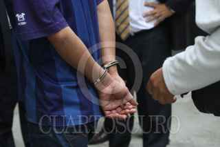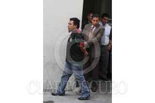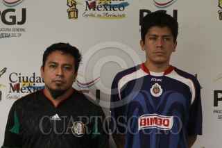 MÉXICO, D.F., 11AGOSTO2010.- Enrique Manuel Martínez Zamora y Carlos Alberto Luz Ocaña, alias El Cha, fueron presentados en la Procuraduría de Justicia del Distrito Federal como probables responsables por el homicidio doloso con arma blanca efectuado en la calle de Totonacas, esquina Rey Topiltzin. FOTO: SAUL LOPEZ/CUARTOSCURO.COM