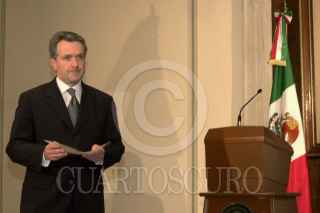 Mèxico, D.F. 04 MARZO 2004.- Santiago Creel Miranda, secretario de gobernaciòn, afirmò en conferencia de prensa que no existe relaciòn entre gobernacion y los videos que muestran al ex coordinador de bancada perredista, Renè Bejarano recibiendo dinero. FOTO: Sandra Perdomo/CUARTOSCURO.COM