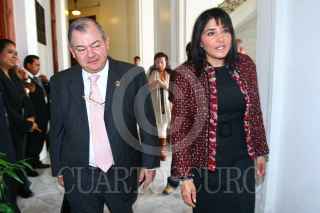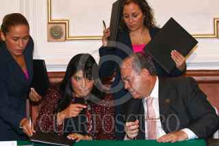 MÉXICO, D.F., 12AGOSTO2010.- Alejandra Barrales, presidenta de la Comisión de Gobierno de la ALDF, y Edgar Elías Azar, magistrado presidente del Tribunal Superior de Justicia, firmaron un convenio de colaboración entre las Contralorías de la Asamblea y el Tribunal. FOTO: ISAAC ESQUIVEL/CUARTOSCURO.COM