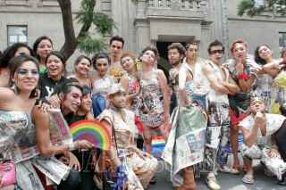 MÉXICO, D.F., 12AGOSTO2010.- Jóvenes simpatizantes de la comunidad lesbico-gay que participaron en las actividades del Día Internacional de la Juventud en el Zócalo, se añadieron al activismo en pro para que los ministro voten la constitucionalidad de las adopciones de parejas conformadas por personas del mismo sexo, esto afuera de la Suprema Corte Justicia de la Nación. FOTO: IVÁN MENDEZ/CUARTOSCURO.COM