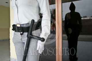 MÉXICO, D.F., 12AGOSTO2010.- Una futura policía monta guardia en el Instituto Técnico de Formación Policial (ITFP). Este día se realizó la Jornada Cultural en el ITFP de la Secretaría de Seguridad Pública del Distrito Federal (SSPDF), junto con la Secretaría de Cultura del DF, esto para fomentar la cultura desde el reclutamiento de elementos de la SSPDF. FOTO: MISAEL VALTIERRA/CUARTOSCURO.COM
