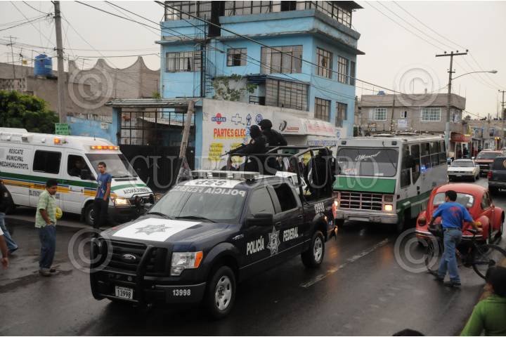 MÉXICO, D.F., 12AGOSTO2010.- Elementos de la Policía Federal, realizaron un operativo en la calle de Cirilo Arenas numero 15 en la colonia Santa Martha Acatitla Norte perímetro de la Delegación Iztapalapa, en una casa de seguridad en la que registró un enfrentamiento entre elementos Federales y supuestos secuestradores sin que se registraran lesionados, logrando la detención de varios presuntos delincuentes. FOTO: LUIS CARBAYO/CUARTOSCURO.COM