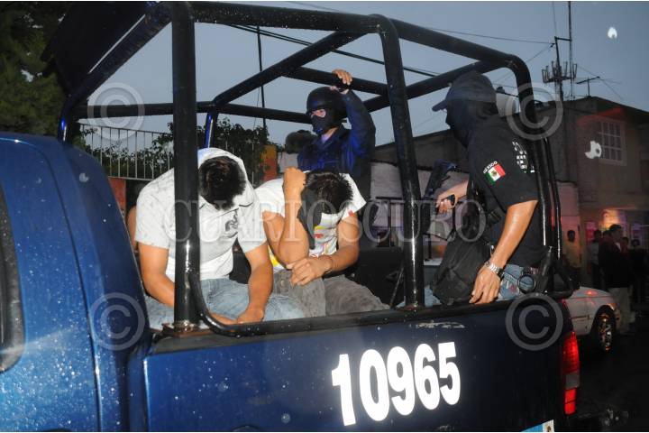 MÉXICO, D.F., 12AGOSTO2010.- Elementos de la Policía Federal, realizaron un operativo en la calle de Cirilo Arenas numero 15 en la colonia Santa Martha Acatitla Norte perímetro de la Delegación Iztapalapa, en una casa de seguridad en la que registró un enfrentamiento entre elementos Federales y supuestos secuestradores sin que se registraran lesionados, logrando la detención de varios presuntos delincuentes. FOTO: LUIS CARBAYO/CUARTOSCURO.COM