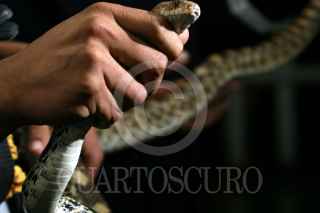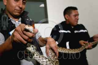 MÉXICO, D.F., 13AGOSTO2010.- Personal de Protección Civil en Benito Juárez, sostienen en sus manos una víbora Pitón de mas de metro y medio de longitud y tres kilogramos de peso que fue hallada en la vía pública sobre la calle de Xochicalco en la colonia del Valle FOTO: LUZ ACEVEDO/CUARTOSCURO.COM