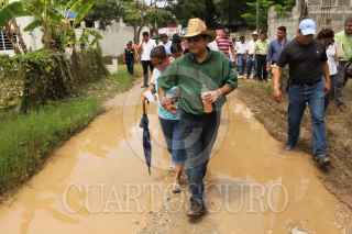 VILLAHERMOSA, TABASCO, 14AGOSTO2010.- Jesús Ali, edil municipal de Centro realizo un recorrido por el circuito Adan y Eva, sector el Paraíso de la ranchería Ixtacomitan quinta sección; donde la falta de pavimentación provoca que en esta temporada de lluvia se abnegue e inunden quedando lodaceros. FOTO: MARCO POLO GUZMAN HERNANDEZ/CUARTOSCURO.COM