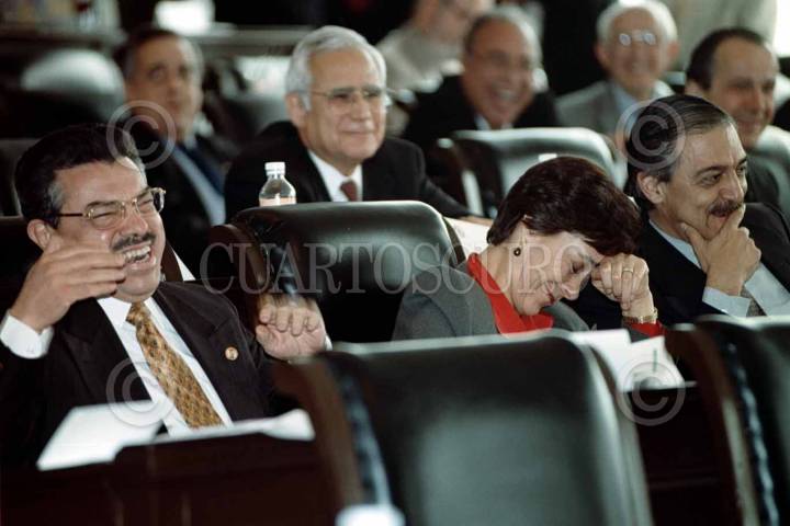 Los legisladores priístas Eduardo Andrade, María de Los Angeles Moreno durante la sesión del Senado de la República, en la que se aprobó la iniciativa del Tratado de Libre Comercio entre nuestro país e integrantes de la Unión Europea.