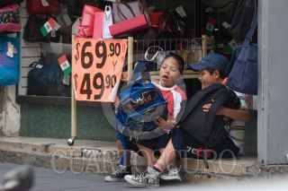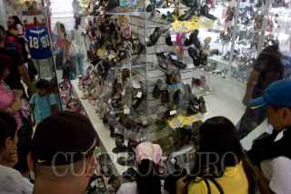 MÉXICO D.F., 15AGOSTO2010.- Una niña, acompañada de sus padres, observa los zapatos antes de adquirirlos ya que los utilizara para el regreso a clases del nivel básico el próximo 23 de Agosto. FOTO: GUILLERMO PEREA/CUARTOSCURO.COM