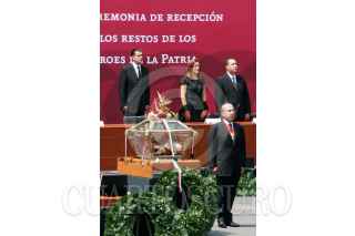 MÉXICO, D.F., 15AGOSTO2010.- Felipe Calderón, Presidente de México, montó una guardia de la ceremonia del traslado de los restos óseos de la gesta insurgente de 1810 que fueron trasladados del Museo Nacional de Historia "Castillo de Chapultepec" a Palacio Nacional. FOTO: CUARTOSCURO.COM