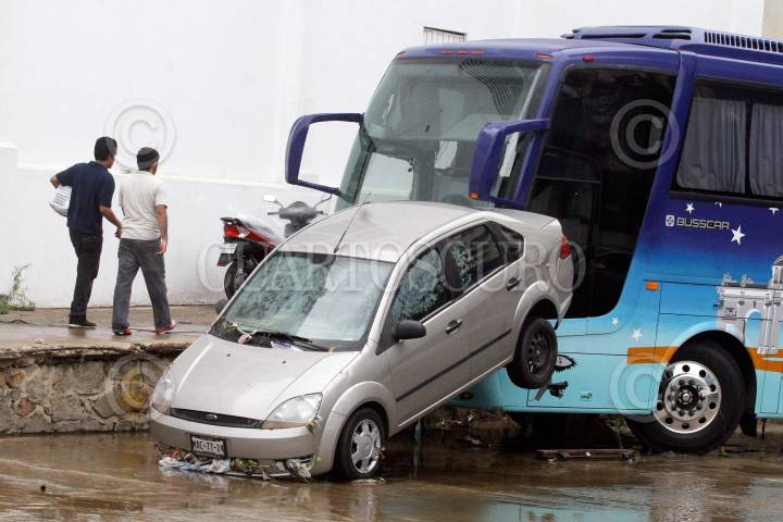 ACAPULCO, GUERRERO, 16AGOSTO2010.- Una fuerte tromba ocurrida la madrugada de este lunes como consecuencia de la onda tropical número 22 provocó que varios vehículos fueran arrastrados hacia la bahía, así como inundaciones en zonas bajas y la zona turística, y caída de árboles y postes. La tormenta arrastró por lo menos cinco vehículos al mar, algunos de los cuales no han podido aún ser sacados. FOTO: JAVIER VERDIN/CUARTOSCURO.COM