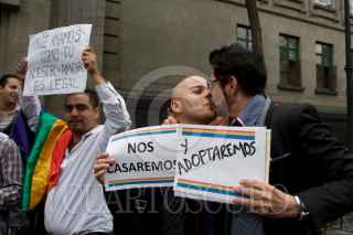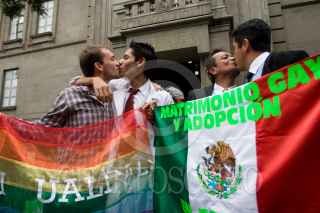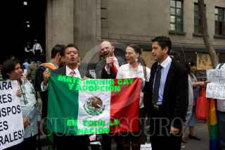 MÉXICO D.F. 16AGOSTO2010.- En sesión ordinaria en la Suprema Corte de Justicia, fue aprobada con nueve votos a favor y dos en contra, la SCJN declaró infundado el juicio que promovió Arturo Chávez Chávez el procurador de la republica, contra la reforma al Código Civil que permite este tipo de uniones en el DF. Manifestantes celebran el aval de la bodas y la adopción para parejas gay alas afueras de este recinto. FOTO: GUILLERMO PEREA/CUARTOSCURO.COM
