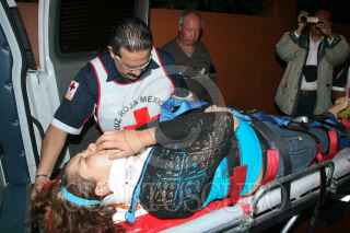 MÉXICO, D.F., 17AGOSTO2010.- Paramédicos y rescatistas trasladaron a la Cruz Roja de Polanco a seis personas gravemente lesionadas, después que de un centro de rehabilitación se derrumbara un elevador montacargas en el municipio de Tlalnepentla. En el accidente se reportaron un total de 13 personas lesionadas que fueron trasladadas a diversos hospitales. FOTO: LUZ ACEVEDO/CUARTOSCURO.COM