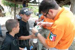 BALANCAN, TABASCO, 17AGOSTO2010.- El grupo Beta del instituto Nacional de Migración, efectuó el operativo "Verano 2010" en los limites de la frontera Sur. Dicha agrupación vela por el cuidado de los migrantes que a diario transitan por los distintos ejidos y poblados; los provee de alimentos, bebidas y medicamentos. En el poblado Barí localizaron por lo menos a 25 indocumentados hondureños, entre ellos a tres menores de edad. FOTO: MARCO POLO GUZMÁN HERNÁNDEZ/CUARTOSCURO.COM