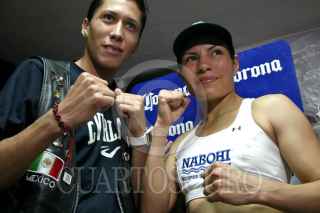 MÉXICO, D.F., 17AGOSTO2010.- Ana María "Guerrera" Torres y Edgar Sosa, durante su pesaje en las instalaciones del Consejo Mundial de Boxeo (CMB). El próximo sábado 11 de septiembre en la Monumental Plaza de Toros México, se efectuará una magna función "Box Bicentenario" en la cual se disputarán varios títulos mundiales de Boxeo. FOTO: MISAEL VALTIERRA/CUARTOSCURO.COM