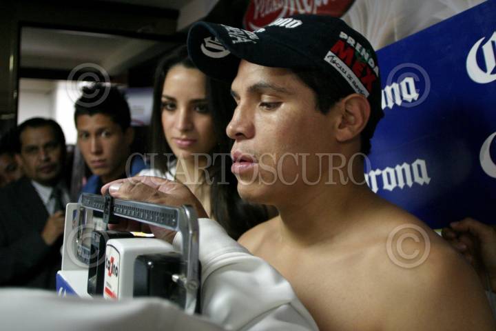 MÉXICO, D.F., 17AGOSTO2010.- Ana María "Guerrera" Torres y Edgar Sosa, durante su pesaje en las instalaciones del Consejo Mundial de Boxeo (CMB). El próximo sábado 11 de septiembre en la Monumental Plaza de Toros México, se efectuará una magna función "Box Bicentenario" en la cual se disputarán varios títulos mundiales de Boxeo. FOTO: MISAEL VALTIERRA/CUARTOSCURO.COM