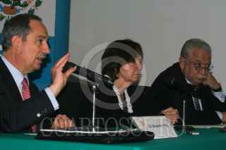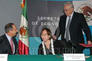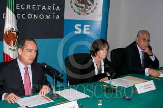 MÉXICO, D.F., 18AGOSTO2010.- El licenciado, Recaredo Arias, junto a la Maria del Carmen Diaz, Coordinadora General del PRONAFIM y el licenciado Rafael Gonzalez, en conferencia de prensa, hablaron sobre el inicio del plan de expansión nacional de micro seguros PRONAFIM con el cual se pretenden crear unas 200 mil pólizas. FOTO: ENRIQUE ORDÓÑEZ/CUARTOSCURO.COM