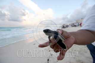 MÉXICO, D.F., 18AGOSTO2010.- Esta noche fueron liberadas 800 tortugas de la especie blanca y carey, ante cancunenses y turistas que se reunieron en playa Marlin. FOTO: AMARANTA PRIETO/CUARTOSCURO.COM