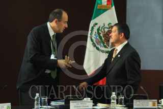 MÉXICO, D.F., 19AGOSTO2010.- El presidente Felipe Calderón se despide de Josefina Vazquez Mota, coordinadora de los diputados del PAN en la Cámara de Diputados al termino del evento de Diálogo por la Seguridad, Evaluación y Fortalecimiento que se realizo en el casino del Campo Militar Marte. FOTO: RODOLFO ANGULO/CUARTOSCURO.COM