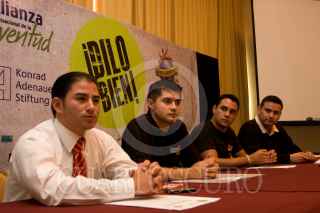 MÉXICO, D.F., 19AGOSTO2010.- Rafael Becerra González, Miguel Ángel Ruiz Martínez, Guillermo Almazán Smith y Rafael Beltrán Bautista, integrantes de Alianza Internacional de la Juventud dieron a conocer lo que será el foro alternativo “Dilo Bien” que se realizara durante el “Encuentro Juvenil Internacional” que se realizara en Guanajuato el 22 y 23 de Agosto del presente año. FOTO: GUILLERMO PEREA/CUARTOSCURO.COM