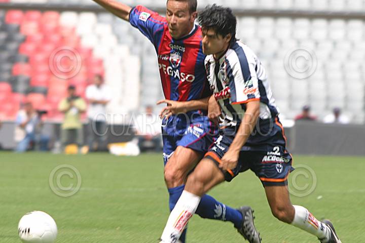 México D.F 07Marzo 2004.- Sebastián González "Chamagol" (Atlante) burla a Walter Erviti (Monterrey en el juego de la jornada 9 del torneo de clausura 2004 disputado en el estadio Azteca en donde el marcador fue de cero goles por ambos equipos. FOTO: Iván Stephens/CUARTOSCURO.COM