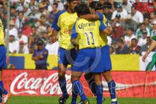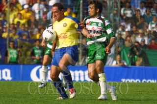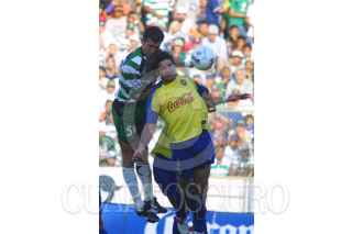 Torreón, Coahuila 07 Marzo 2004.- Carlos Carriño (Santos) y Germán Villa (América) disputan un balón durante el juego de la jornada 9 en el que las águilas del América vencieron un gol por cero a Santos. FOTO: Jorge López/CUARTOSCURO.COM