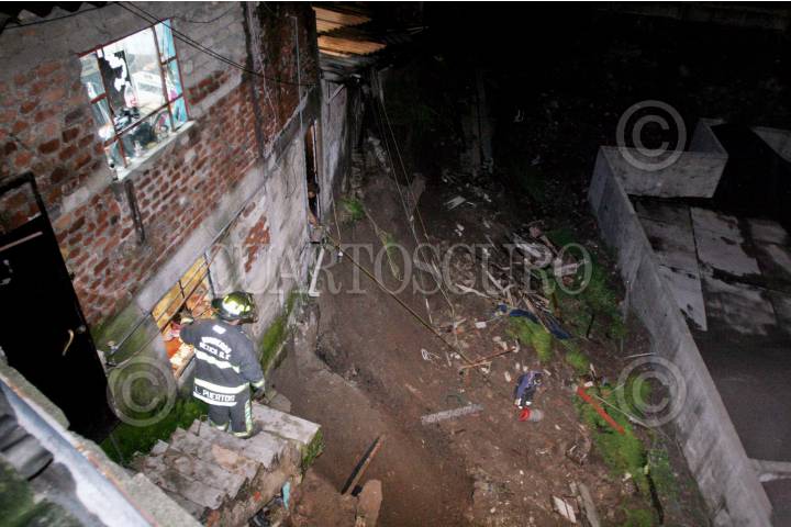 MÉXICO, D.F., 20AGOSTO2010.- Una roca de más de una tonelada de peso cayó en el patio de unas casas de cartón sin que se reportaran personas lesionadas. El reblandecimiento de la tierra fue en el Callejón de las Vías y la Av. Juárez de la Cololonia El Ocote en la delegación Cuajimalpa. FOTO: LUZ ACEVEDO/CUARTOSCURO.COM