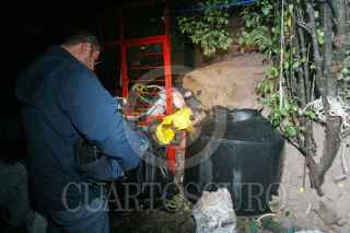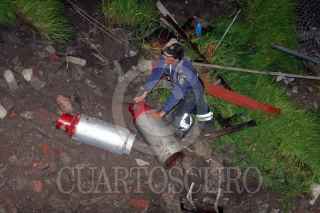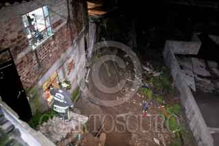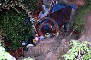 MÉXICO, D.F., 20AGOSTO2010.- Una roca de más de una tonelada de peso cayó en el patio de unas casas de cartón sin que se reportaran personas lesionadas. El reblandecimiento de la tierra fue en el Callejón de las Vías y la Av. Juárez de la Cololonia El Ocote en la delegación Cuajimalpa. FOTO: LUZ ACEVEDO/CUARTOSCURO.COM