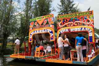 MÉXICO, D.F., 20AGOSTO2010.- Los embarcaderos de Xochimilco en donde los visitantes nacionales y extranjeros pueden abordar embarcaciones llamadas trajineras navegando por los canales y chinampas, y disfrutando de comida típica y flores que se venden en los alrededores. Este es el mayor punto turistico al sur de la ciudad de México donde el pasado lacustre que caracterizó alguna vez a todo el Valle de México se encuentra presente y forma parte de la vida cotidiana en un entorno lleno de tradiciones con siglos de historia y que fue declarado por la UNESCO como Patrimonio Cultural y Natural de la Humanidad en 1987; actualmente la contaminación y la sobre explotación de los acuíferos subterráneos de la zona lacustre han puesto en peligro la zona. FOTO: RODOLFO ANGULO/CUARTOSCURO.COM