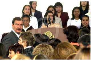 México D.F. 08 MARZO 2004.- Vicente Fox, primer mandatario a su llegada al Museo de Antropología para encabezar la ceremonia conmemorativa del día mundial de la mujer. FOTO: Sandra Perdomo/CUARTOSCURO.COM