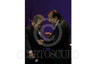 MÉXICO, D.F., 22AGOSTO2010.- El maestro Armando Manzanero, durante el homenaje que se le realizo a el maestro Chucho Ferrer en el Teatro de la Ciudad. FOTO: ENRIQUE ORDÓÑEZ/CUARTOSCURO.COM