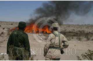 Cd. Juárez, Chihuahua16 MARZO 2004.- Aspecto de las 4.5 toneladas de marihuana que fueron incineradas en las instalaciones del 20 regimiento militar. La droga destruida fue incautada en los ultimos 30 dias, producto de decomisos realizados por las diferentes corporaciones policiacas que operan en la region. FOTO: JGuadalupe Perez/CUARTOSCURO.COM