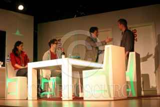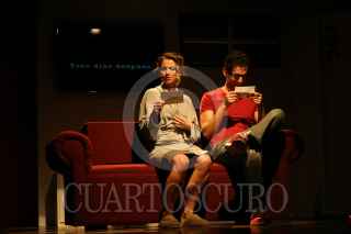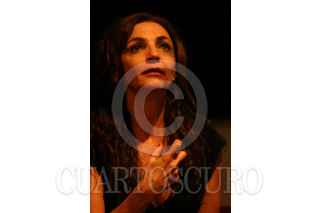 MÉXICO, D.F., 24AGOSTO2010.- Nora (Ludwika Paleta), durante una escena de la obra de teatro "No sé si cortarme las venas o dejármelas largas", obra de Manolo Cano, la cual se estrenó la noche del lunes 23 de agosto en el Teatro Sala Chopin. FOTO: MISAEL VALTIERRA/CUARTOSCURO.COM