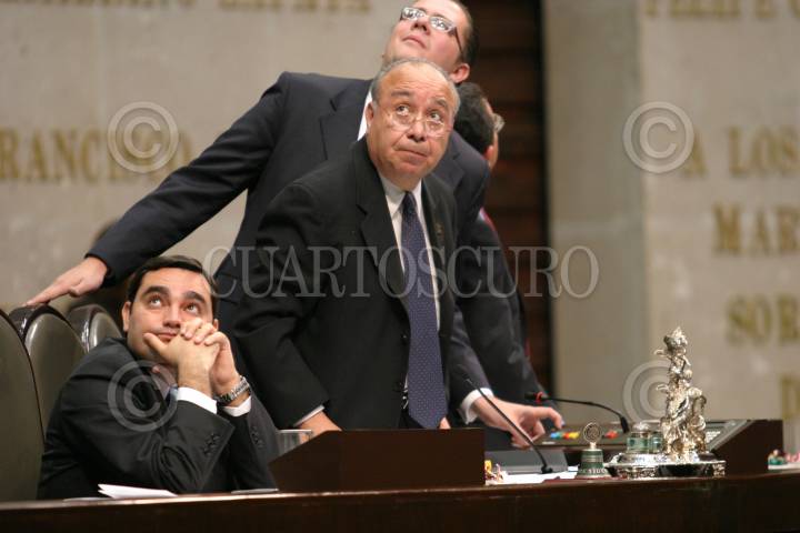 México, D. F. 16 Marzo 2004.- Los diputados Germán Martínez, Enrique Döring y Francisco Barrio, coordinador de la bancada panista en San Lázaro conversan durante la primera sesión del segundo periodo ordinario de la 59 legislatura. FOTO: Nelly Salas/CUARTOSCURO.COM