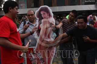 MEXICO, D.F., 24AGOSTO2010.- La modelo paraguaya Larissa Riquelme firmó autógrafos en la plaza Cuicuilco. FOTO: IVAN STEPHENS/CUARTOSCURO.COM