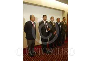 MÉXICO, D.F., 25AGOSTO2010.- Alberto Anaya, dirigente del PT junto a Jesus Ortega, Dirigente del PRD y Manuel Camacho Solís, durante la conferencia que realizaron para informar que el pre-candidato de esta coalición a la gubernatura de Guerrero mejor posicionado según las encuestas, es Ángel Aguirre Rivero. FOTO: CUARTOSCURO.COM