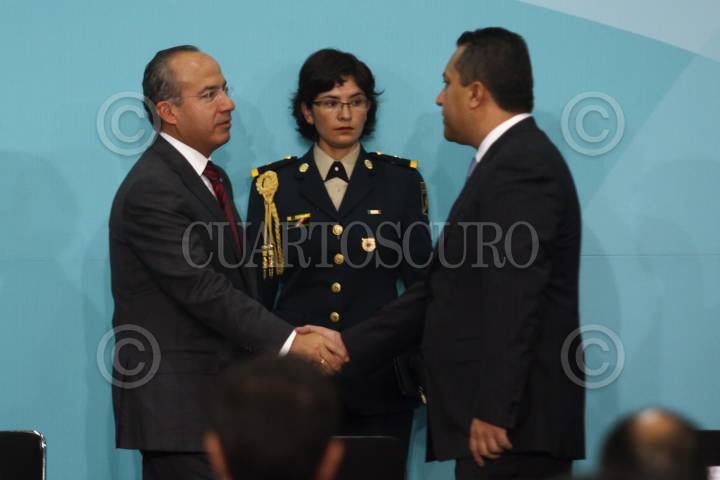 MÉXICO, D.F., 26AGOSTO2010.- El presidente Felipe Calderón durante el evento Debilitando el Poder Económico de la Delincuencia Organizada que se realizo en el salón Adolfo López Mateos de la residencia oficial de Los Pinos. FOTO: RODOLFO ANGULO/CUARTOSCURO.COM